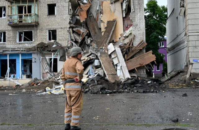Un centro comercial resultó dañado, así como casas y vehículos, dijo Serhii Bolvinov, jefe del Departamento de Investigación de la Policía Nacional en Járkiv.